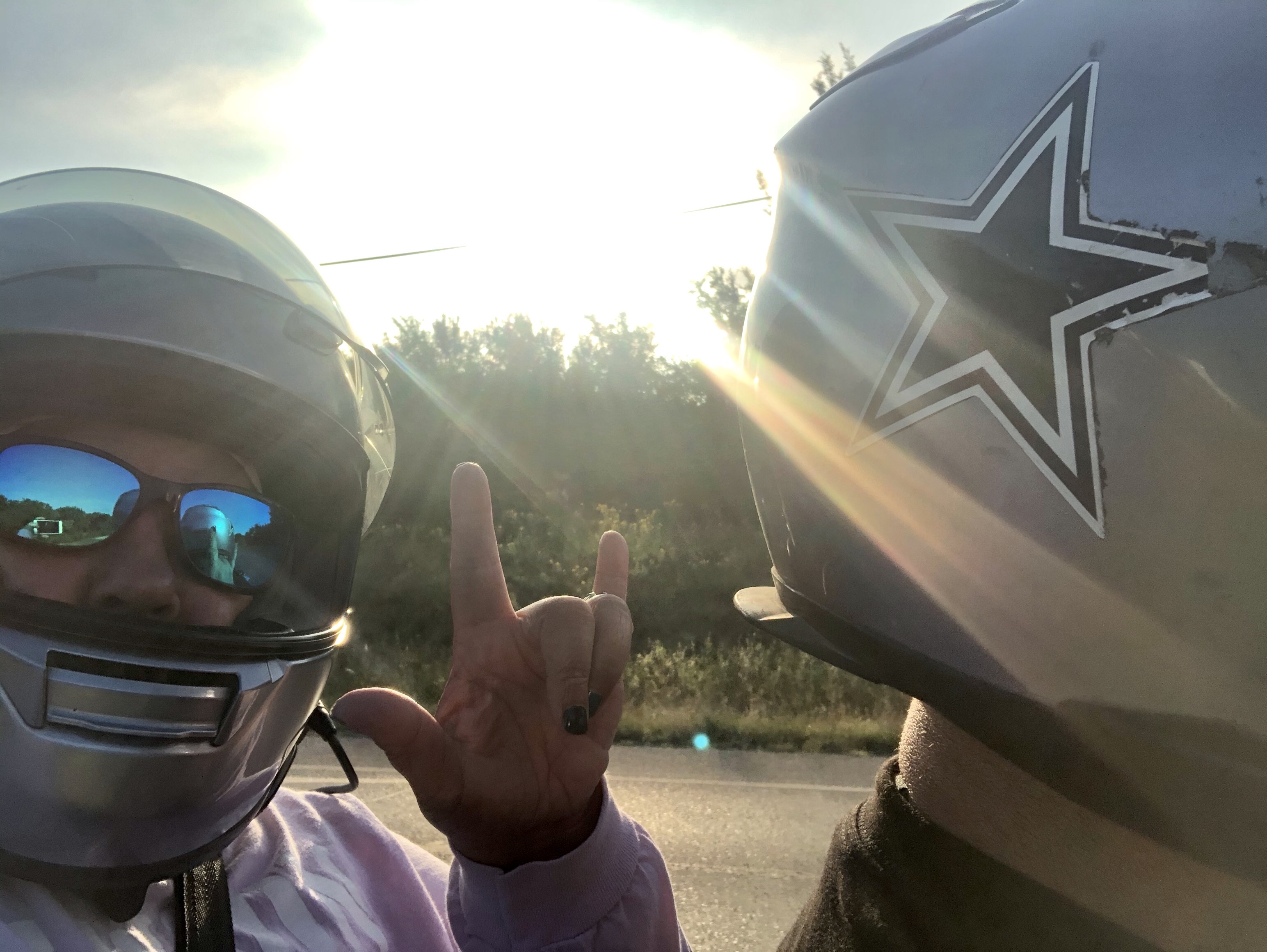 We got sunburned, had cool mornings and hot & sweaty afternoons, good food, a few grooved pavement stretches of road, lots of logging trucks on Friday in East Texas, great restaurants with good food, awesome accommodating hotels, a forgotten traveling fan and a new one, a quick helmet fix, hot hot and hot the closer we got to home but all in all it was a great quick get away for some us time after being at home with our old enough children for 9 weeks during this virus time.